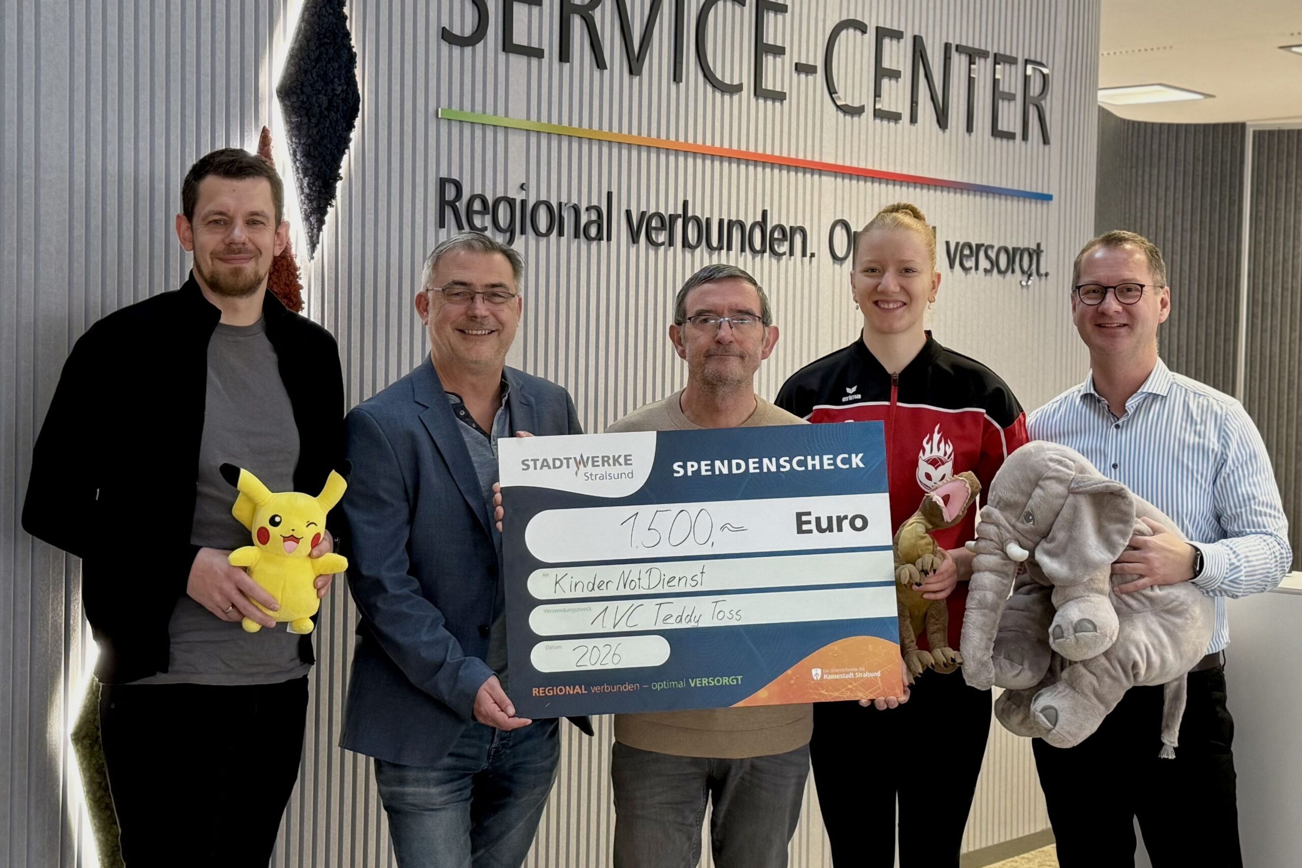 1. VC Stralsund: Erfolgreicher Teddy Toss bringt Spende für Kindernotdienst